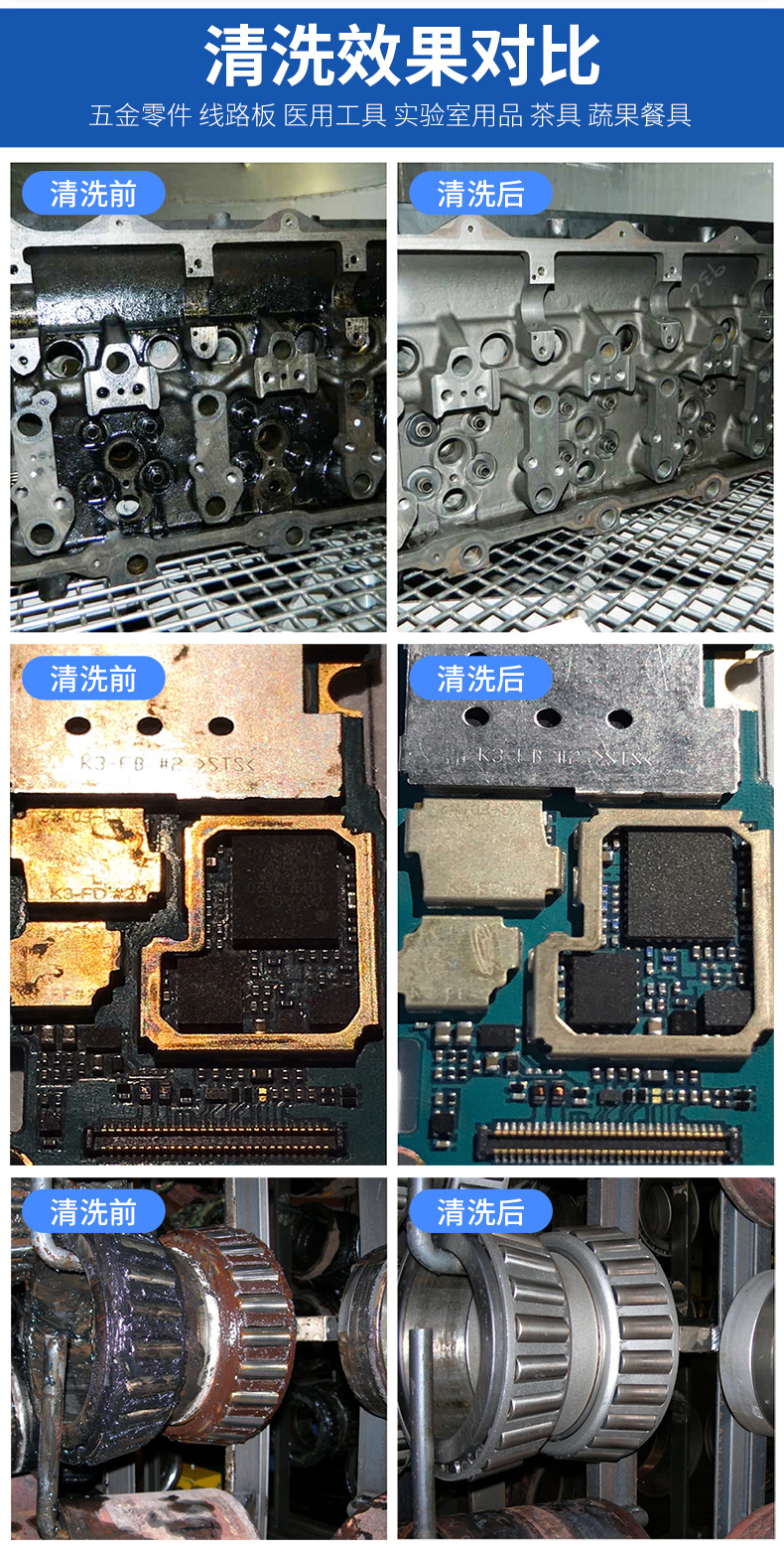 2.制造加工行業適用范圍:可除塵、除油、除銹、除蠟、除松香、除漆、除膠、除頑固污漬