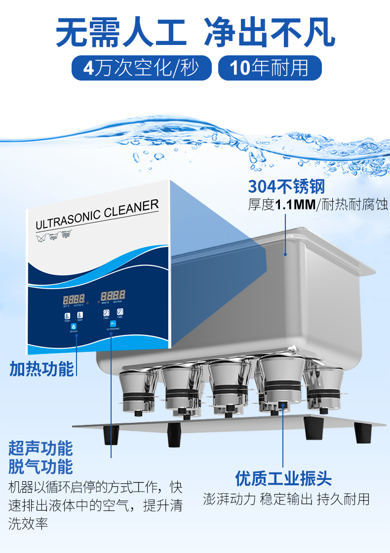 • 一鍵脫氣:有效排出液體中空氣,減少物品氧化提升清洗效率;