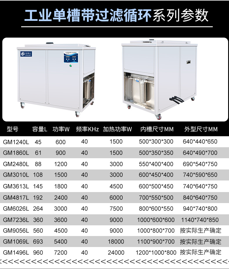 冠博仕超聲波清洗機 工業單槽機 內置過濾循環系統 45L-960L可選 支持定制