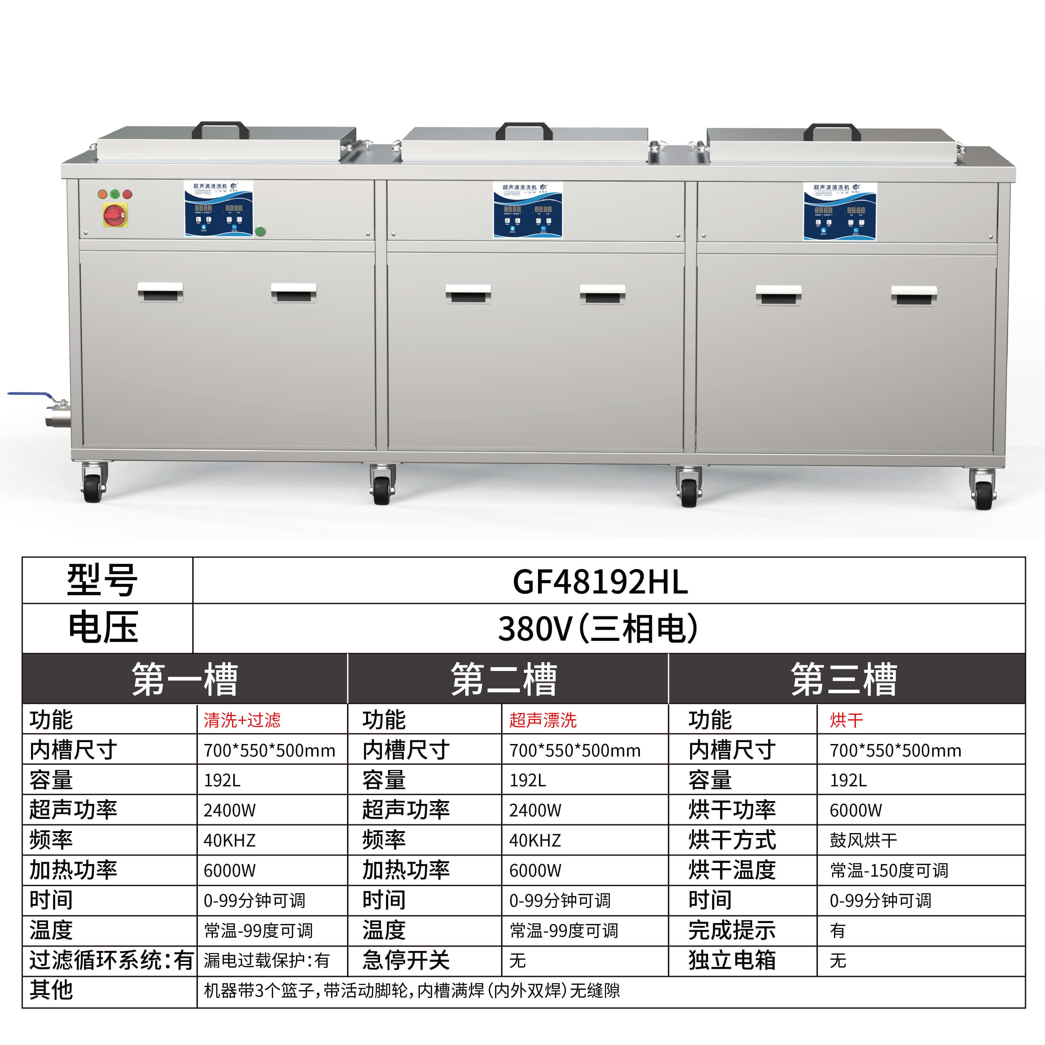 - 第三槽烘干功率:6000W