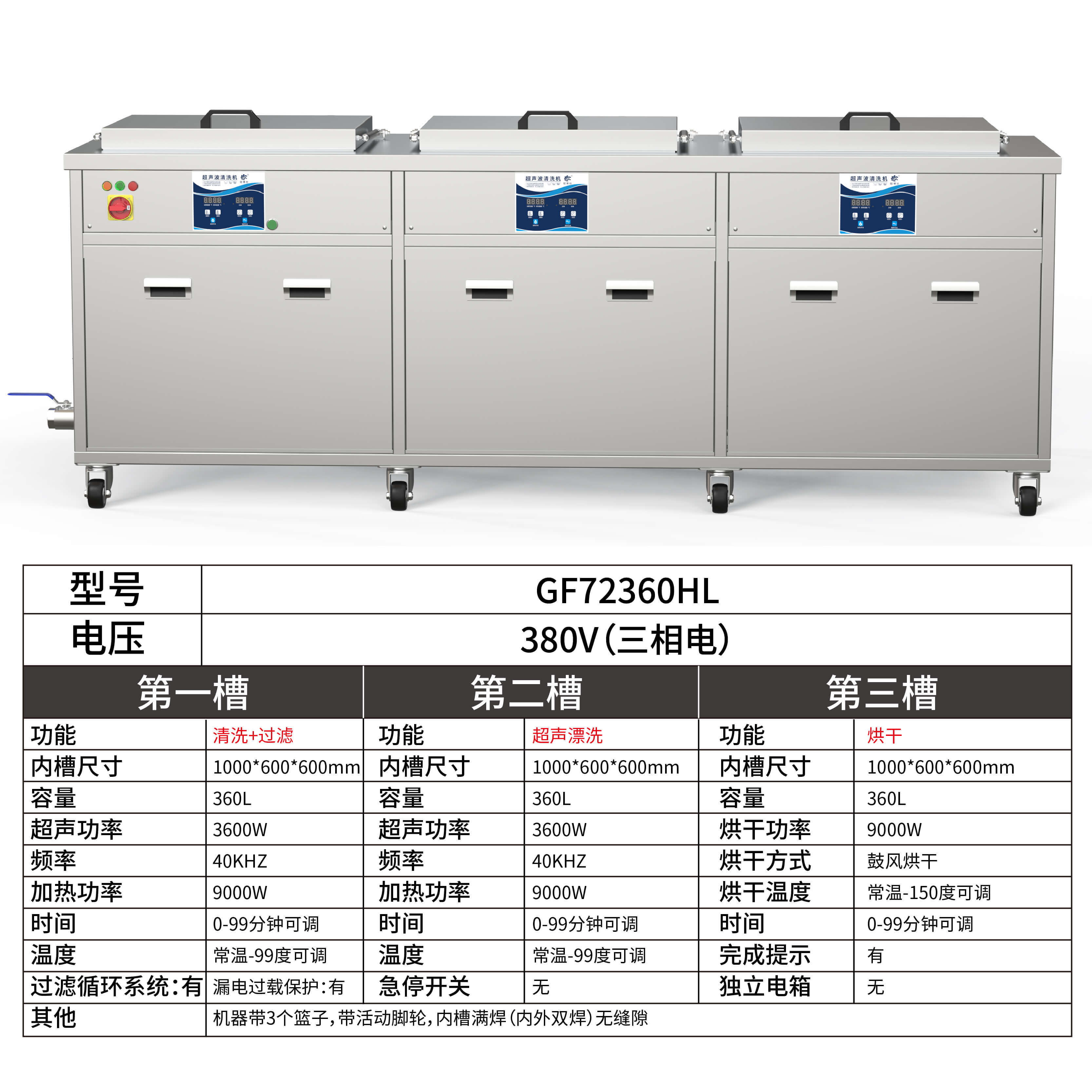 - 第三槽烘干功率:9000W
