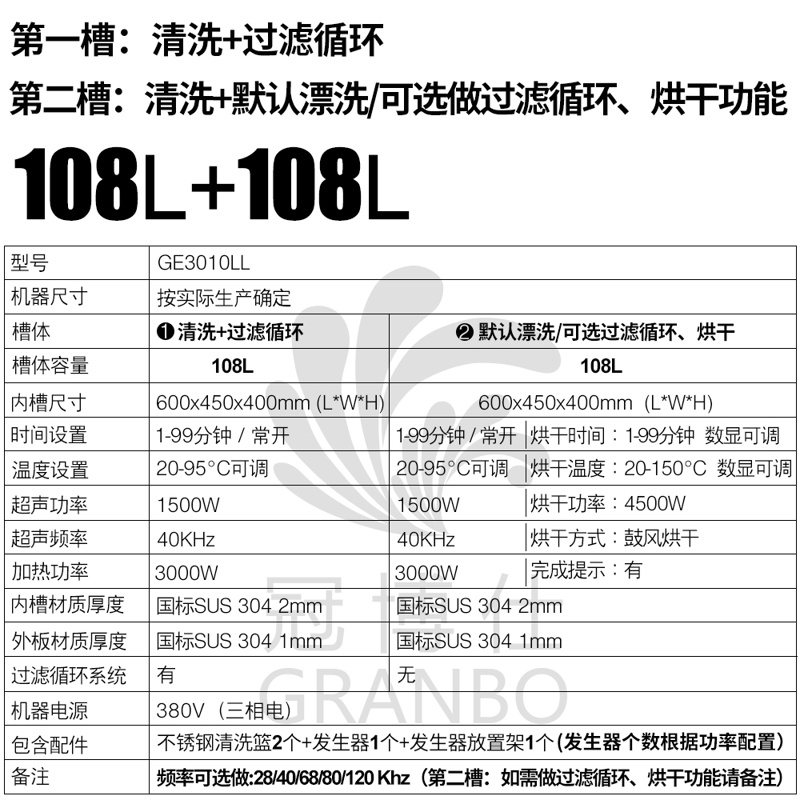 - 雙槽工藝:超聲波清洗+過濾+漂洗,烘干等工藝可定制