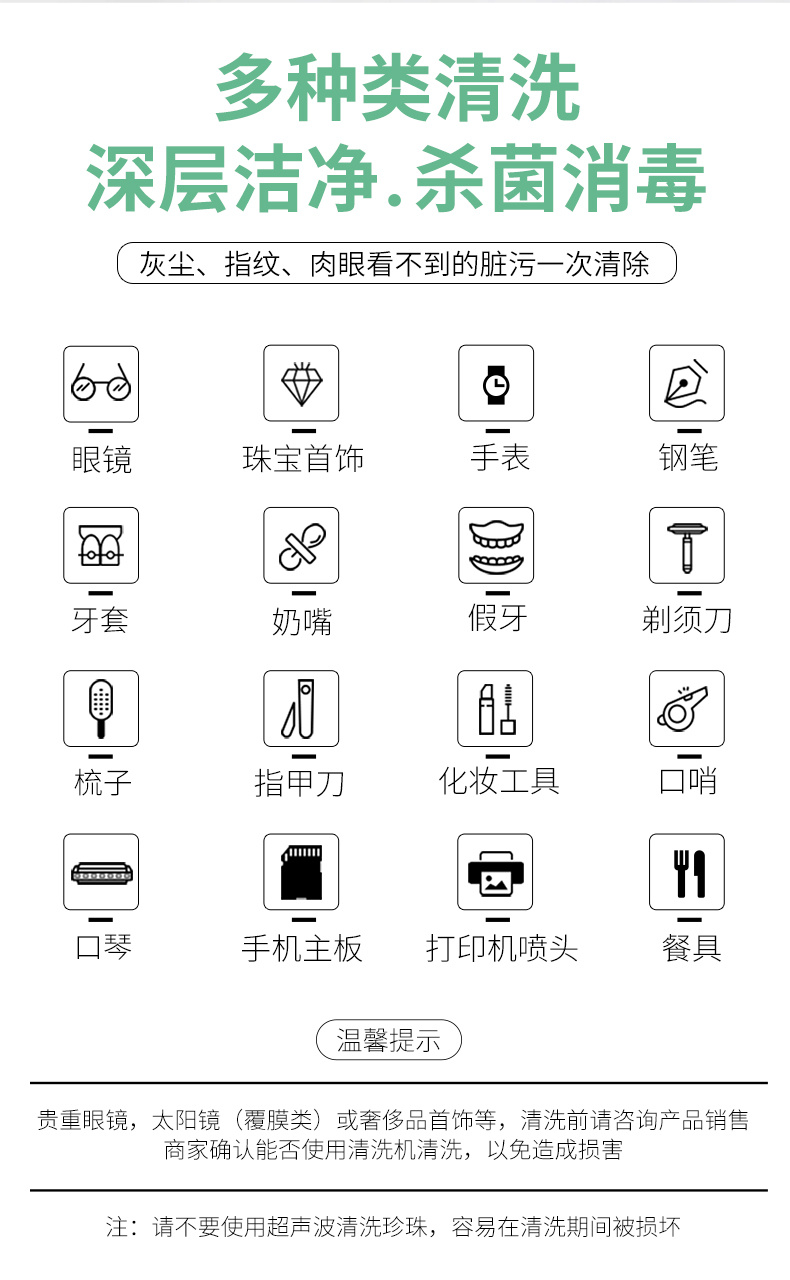 - 超聲波清洗機與清洗劑一起使用,清洗效果更佳!