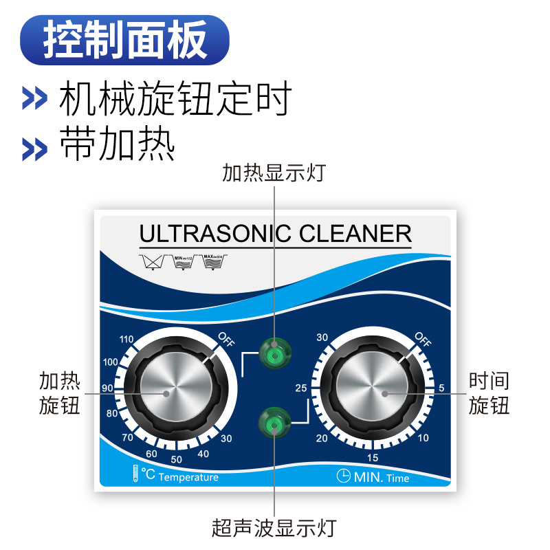 標簽: 商用 工業用 機械旋鈕系列 噴油嘴清洗機 帶加熱 定時功能 40KHz 120w 2L