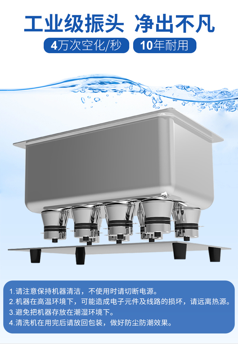 - 工業(yè)換能器: 采用工業(yè)震頭40KHz,力度強(qiáng)勁效果佳;