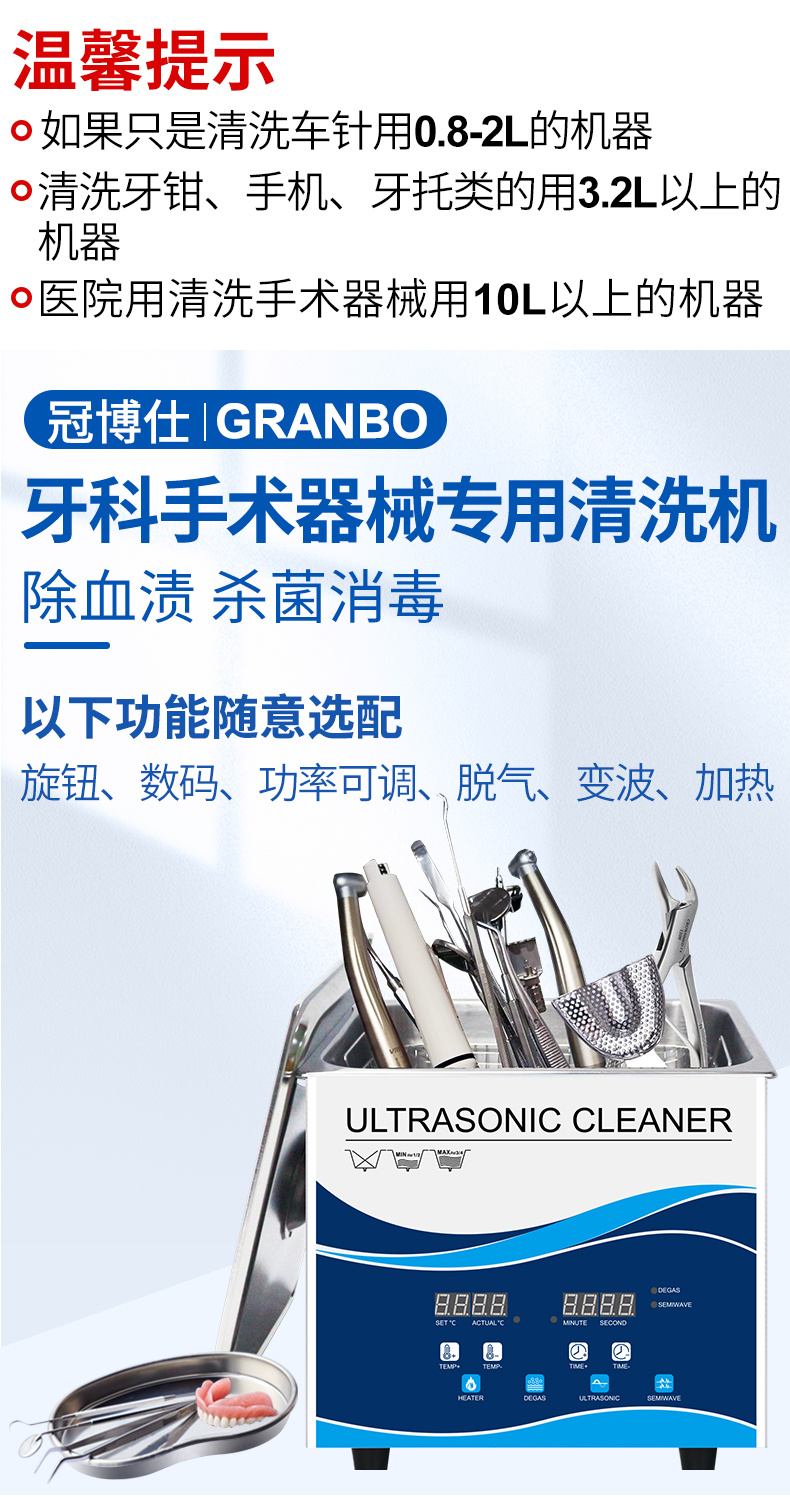 標簽: 商用 牙科器械清洗機 40KHz 180W 6.5L 數碼變波脫氣系列