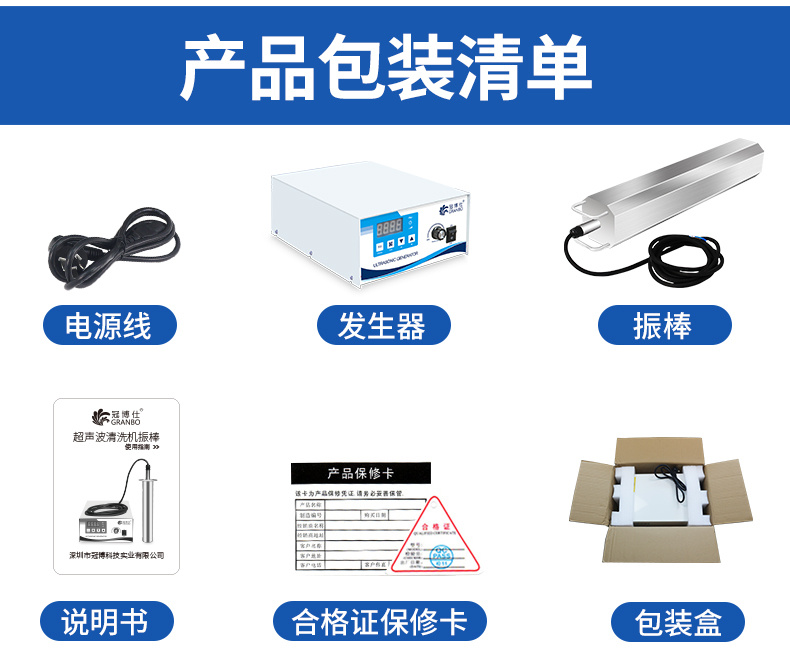 震棒、發(fā)生器、發(fā)生器電源、說明書、合格證保修卡、內(nèi)置珍珠泡沫。